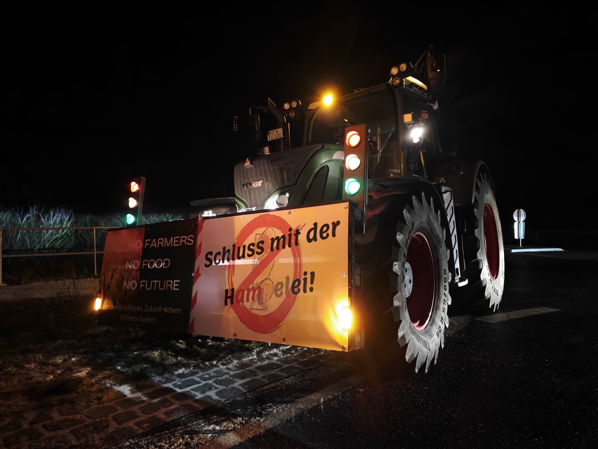 Der 08. Januar 2024 ist ein besonderer Tag. Bundesweit gehen die Bauern auf die Straße und demonstrieren gegen die aktuelle Politik der Ampel-Regierung. Andere Branchen schließen sich mittlerweile an und auch Wasserstraßen werden blockiert. Das Land scheint still zu stehen. Am frühen Morgen machte ich mich deshalb auf den Weg und schaute mir die Sachlage im Bereich Helmstedt/Königslutter an. Der Rennauer Kreisel war um 05:30 Uhr noch komplett befahrbar, allerdings sah die Welt in Ochsendorf etwas anders aus. Mehrere Bauern hatten Ihre Landmaschinen im Kreisel an den Ausfahrten postiert und somit den Verkehr fast lahm gelegt. Die Abfahrten der BAB2 wurden offen gelassen, aber die Auffahrten blockiert. Somit staute sich der Verkehr mässig. Viele Berufspendler wendeten und suchten sich einen anderen Weg. Die Polizei war mit einem Streifenwagen vor Ort.